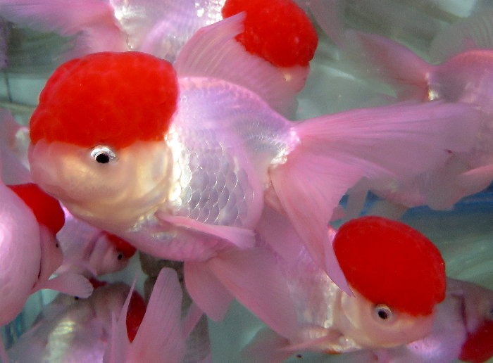 紅帽金魚寫真(White oranda with red cap)