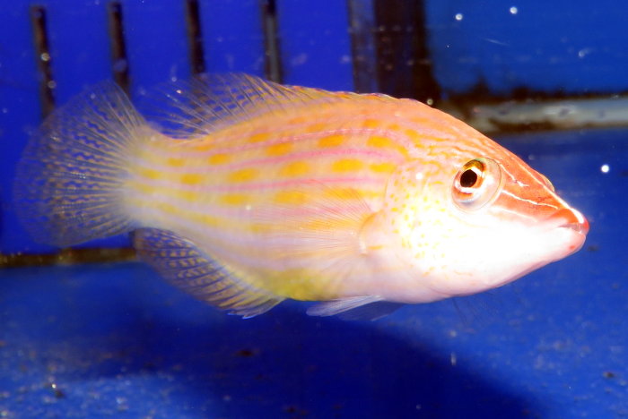 隆頭魚科,又名八帶擬唇魚,條紋擬鸚鯛,成魚最大體長約14公分,分佈於印度至太平洋礁區,近海沿岸.以底棲性的甲殼類生物,小型的軟體動物及棘皮動物為食.